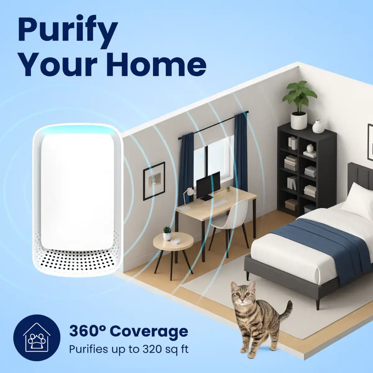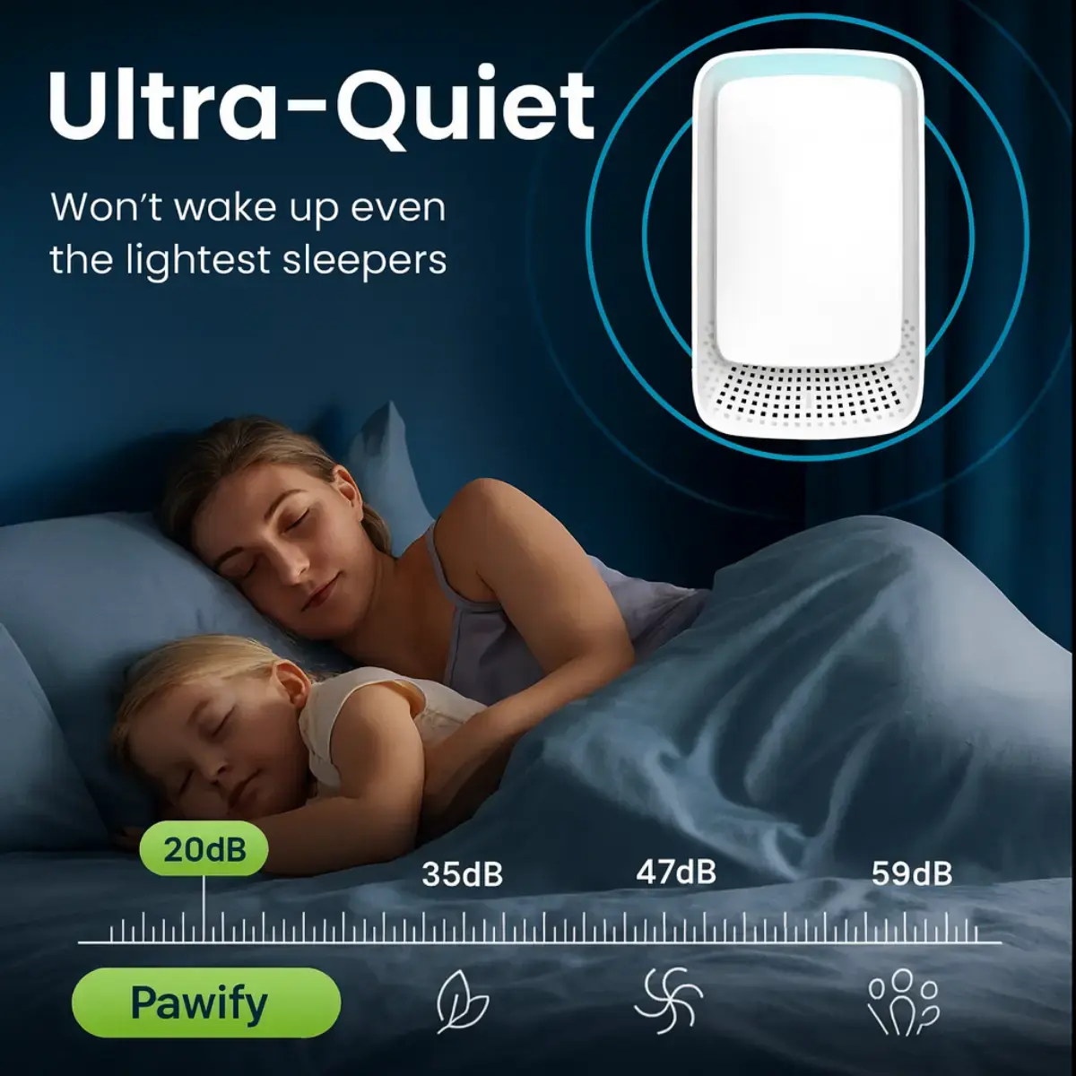 It uses safe negative ion technology designed to neutralize odors and freshen the air. While all ionizers may produce a tiny trace of ozone as a natural byproduct, the amount from Pawify is extremely low and well within safety standards set by the EPA and FDA. That means it’s safe to run 24/7 around your cats, kids, and family.